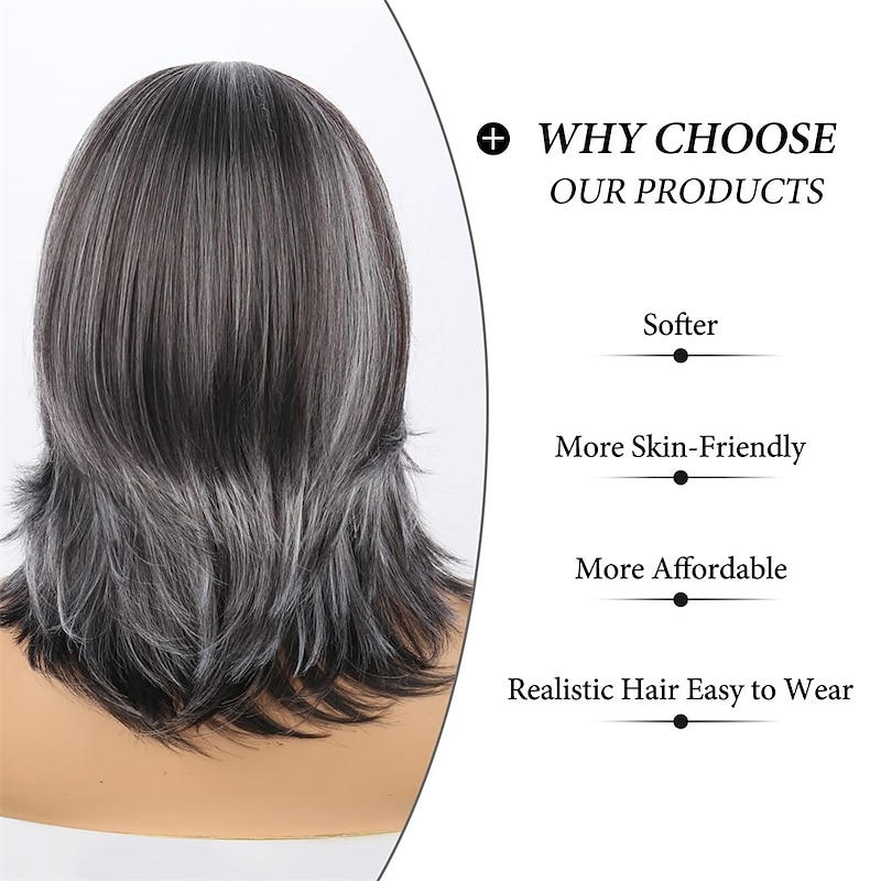 $20.99 - Dark Gray Ombre Layered Wigs with Curtain Bangs for Black Women,Synthetic Short Gray Highlight Wavy Layered Curly ,Black ang Grey Wavy Bob Wig for Daily Use 2025. Shop for cheap Synthetic Trendy Wigs online? Buy at lightinthebox.com on sale today!