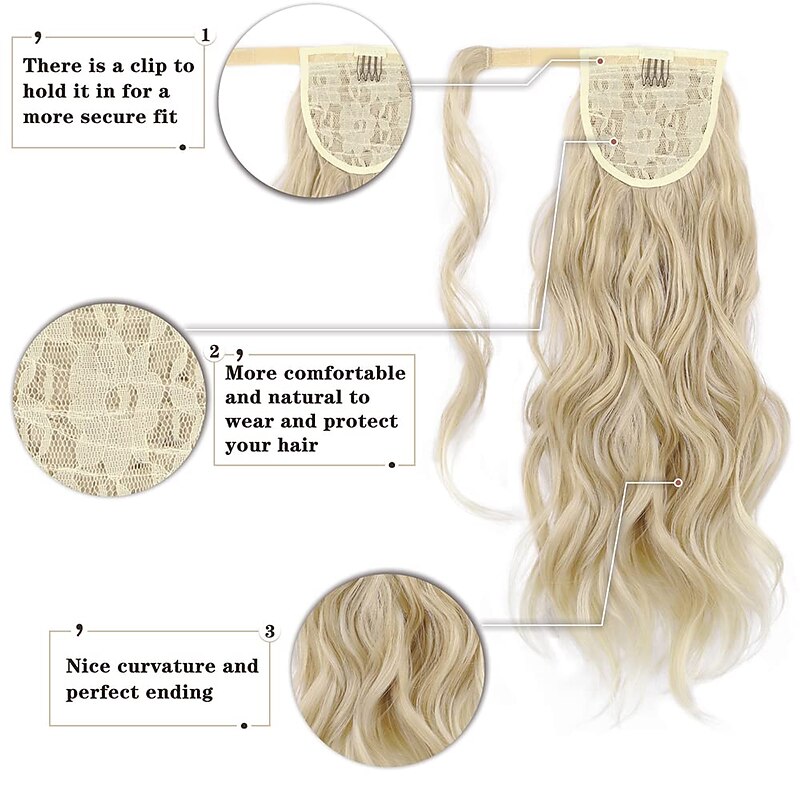 More information about Wavy Ponytail Extension Wrap Around Ponytail Hair Extensions Bleach Blonde Mix Ash Blonde Ponytail Extension 20 inch