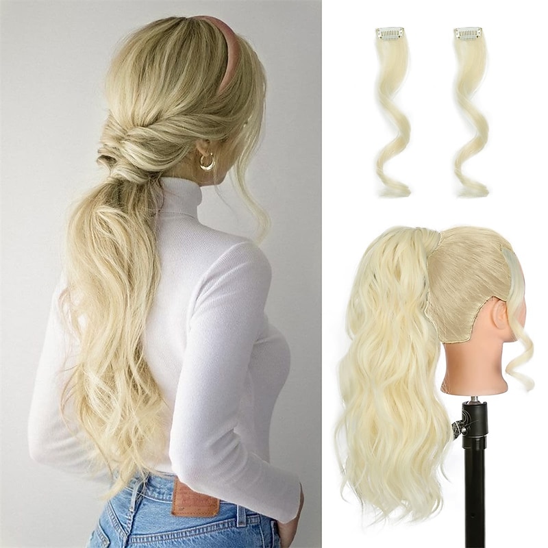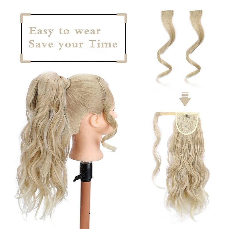 trending ! Wavy Ponytail Extension Wrap Around Ponytail Hair Extensions Bleach Blonde Mix Ash Blonde Ponytail Extension 20 inch