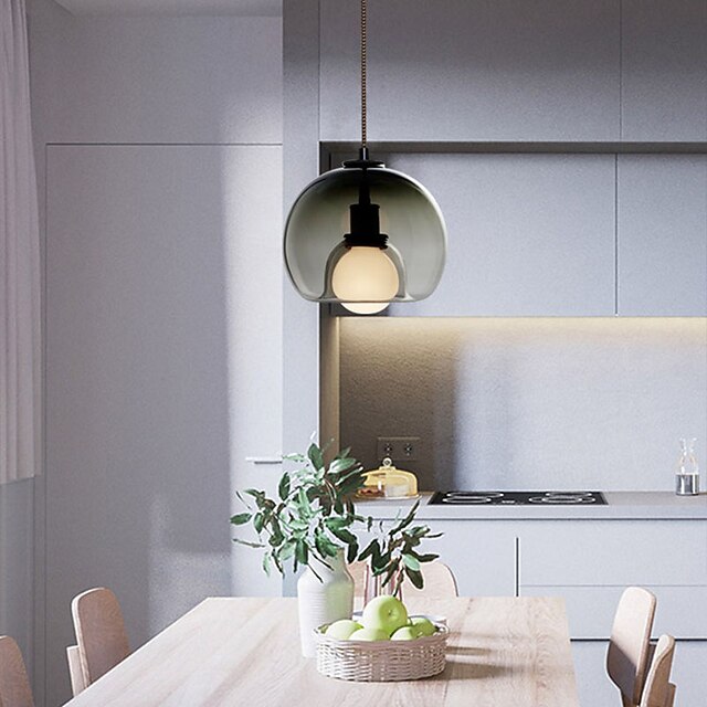 trending ! LED Pendant Light Gray Amber Glass Globe Single Design latest Nordic 25cm Dining Room Bedside Light Electroplated 110-120V 220-240V