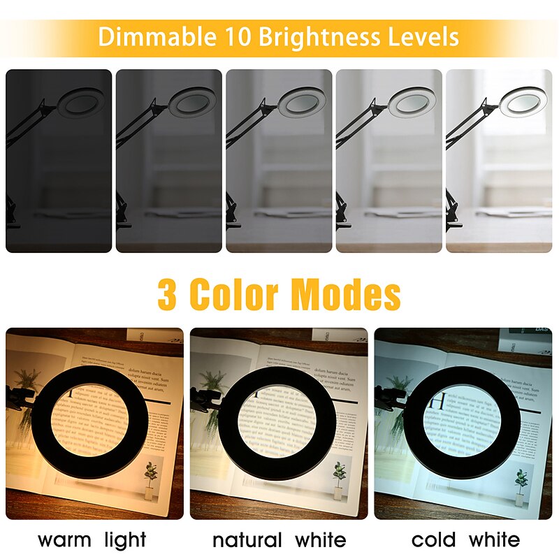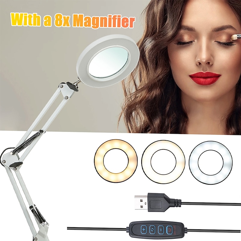 $34.99 - Flexible Clamp-on Table Lamp with 8x Magnifier Glass Swing Arm Dimmable Illuminated Magnifier LEDs Desk Light 3 Color Modes Lamp 2025. Shop for cheap Desk Lamps online? Buy at lightinthebox.com on sale today!