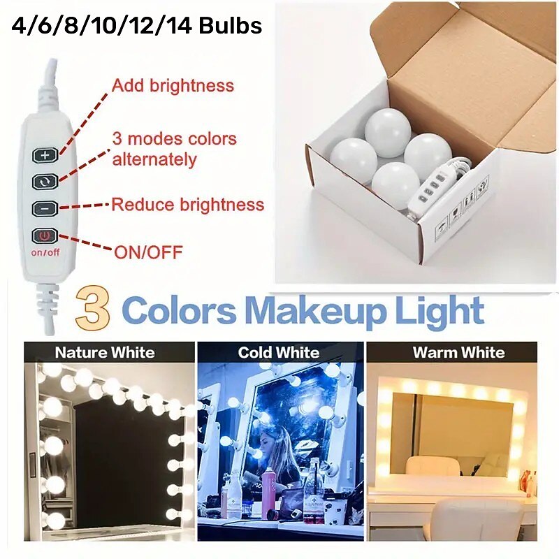 This 3 Colours LED Make Up Mirror Light Bulbs USB Vanity Makeup Mirror Lights Bathroom Dressing Table Lighting Dimmable LED Wall Lamp combines elegant design with practical functionality. Every detail has been carefully considered to ensure you get the finest possible experience. The first-class construction means this product will serve you well for years to come.