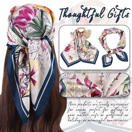 trending ! Trendy Printed Flower Scarf for Women - Career Neck Simulation Silk Scarves Bandanas for Women Hair Wrap Sleeping