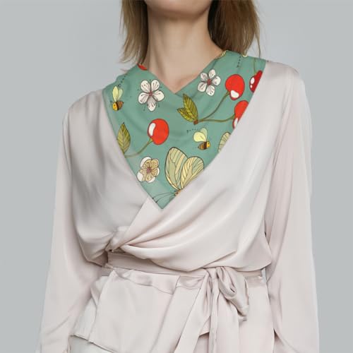 trending ! KOBLEN Cherry Print Silk Scarf 23.6x23.6 Inch Square Neck Scarf for Women Breathable Lightweight Neckerchief Silk Head Scarf Hair Wrap