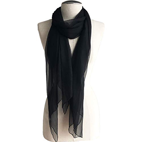 trending ! Pure Silk Chiffon Shawl/scarf, Oblong Size 76" L x 34" W, Solid Black