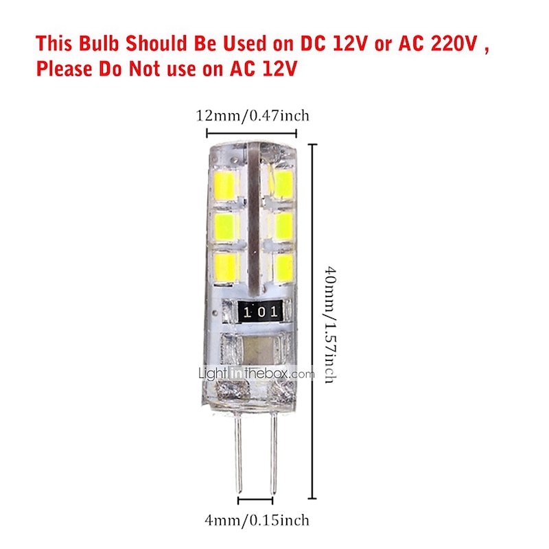 $18.49 - 10PCS G4 Bi-pin LED Light Bulb 3W 24LED SMD 2835 Equivalent Halogen Bulb 30W Warm white 3000K Daylight White 6000K 360° Beam Angle Flicker Free DC12V AC220V AC110V 2025. Shop for cheap LED Bi-pin Lights online? Buy at lightinthebox.com on sale today!