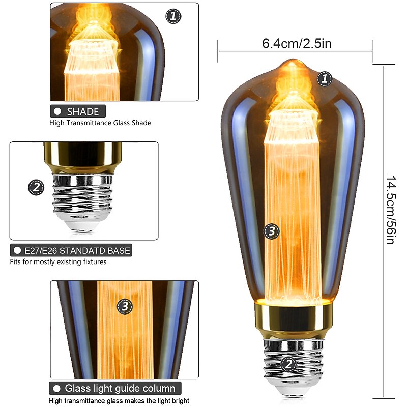$38.99 - 3PCS ST64 Vintage Edison LED Light guide Light Bulbs 3W 220V 110V E26/E27 Base Warm White 2200K Replacement Bulbs for Wall Sconces Lights Pendant Light Amber Warm & Squirrel Cage 2025. Shop for cheap Incandescent Bulbs online? Buy at lightinthebox.com on sale today!
