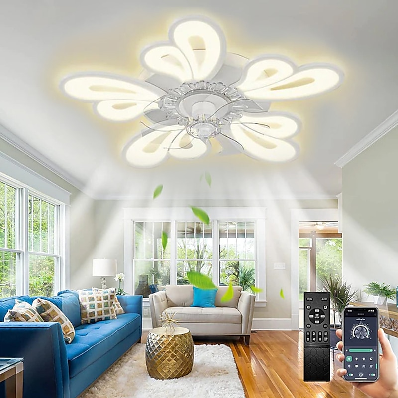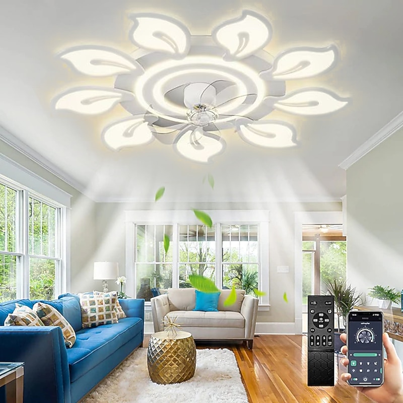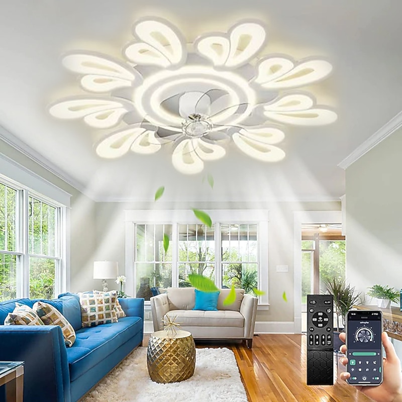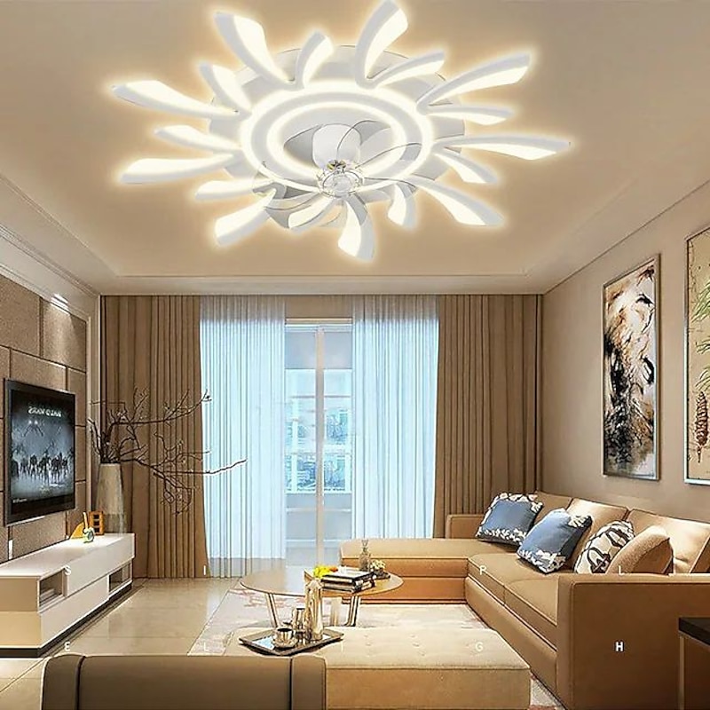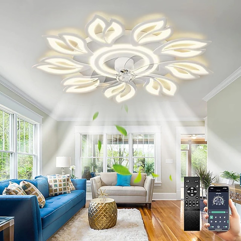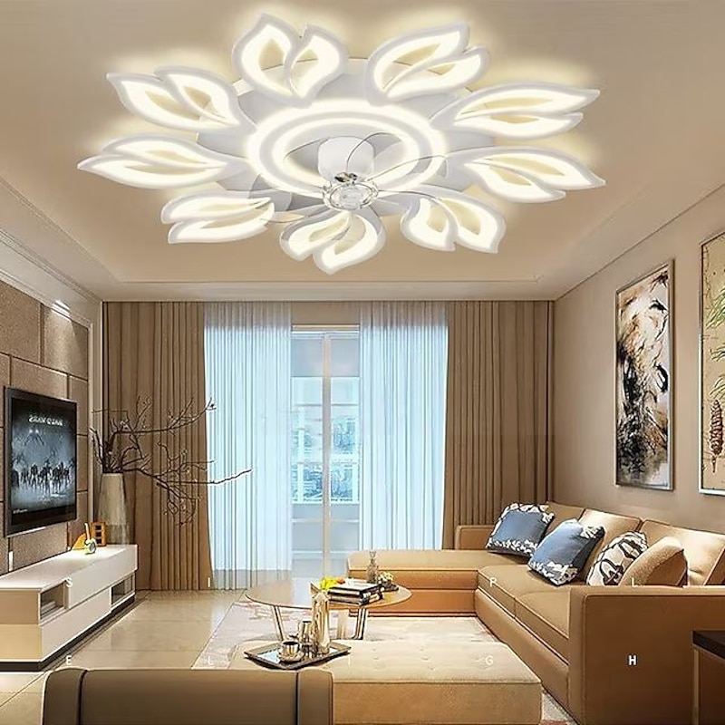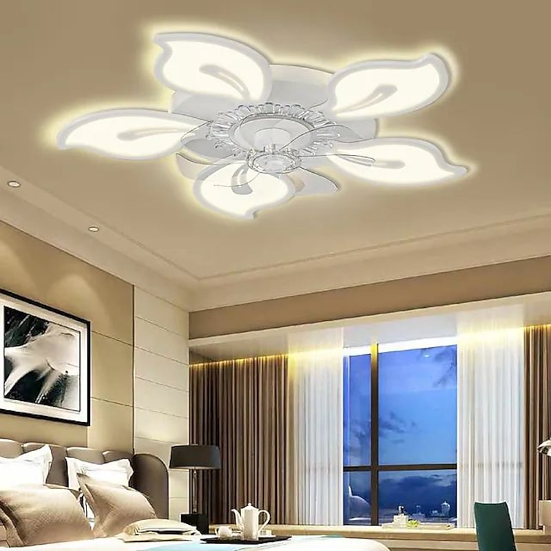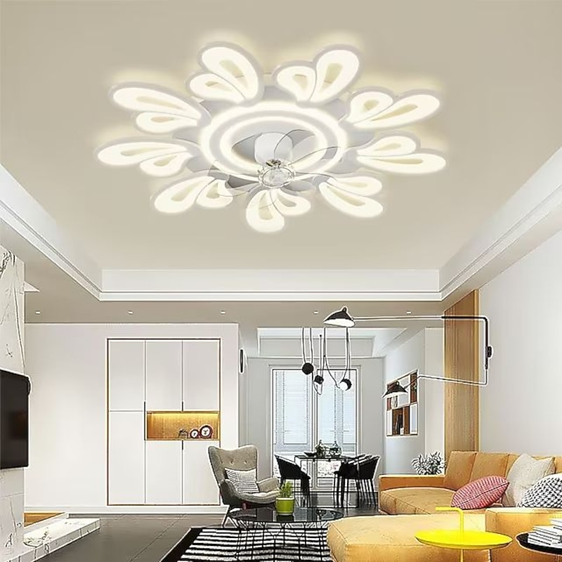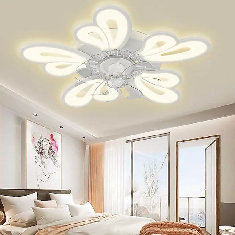 trending ! LED Ceiling Fans Dimmable with Remote Contral Flower Design 20"/39" 5/9-Heads Flush Mount Ceiling Lamp Acrylic Lampshade Chandelier Bedroom Living Room