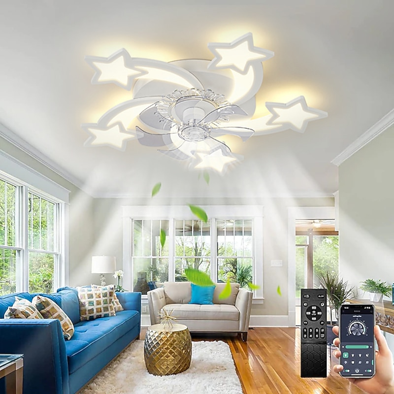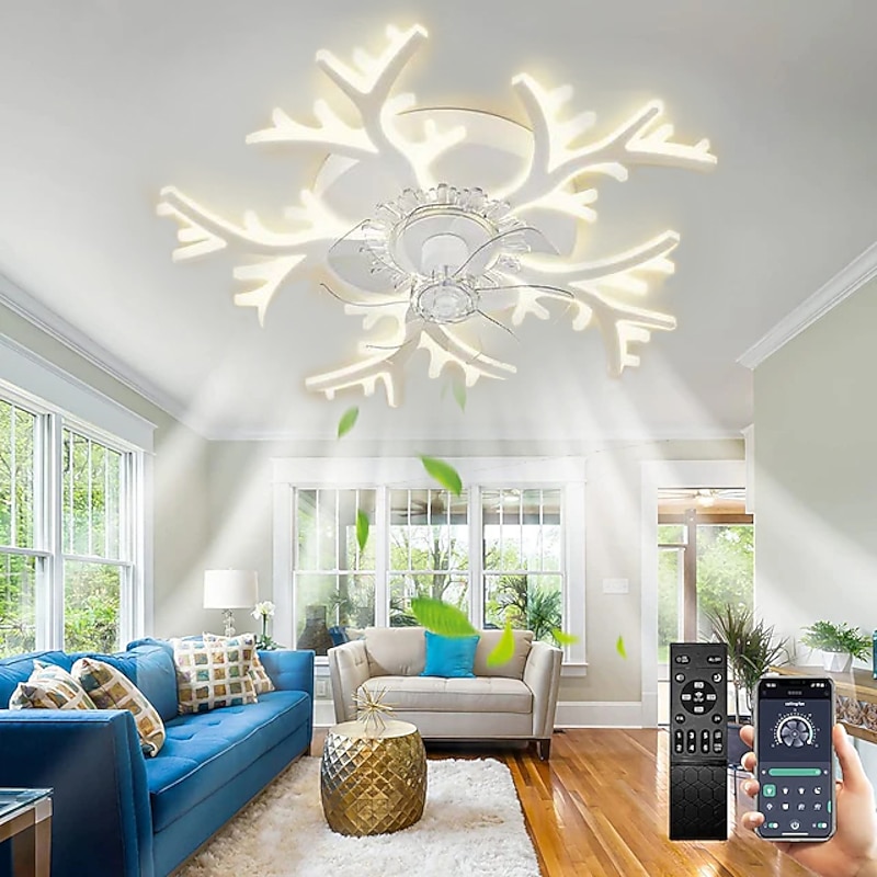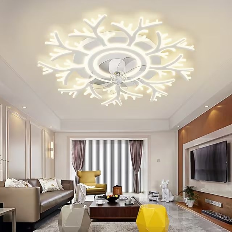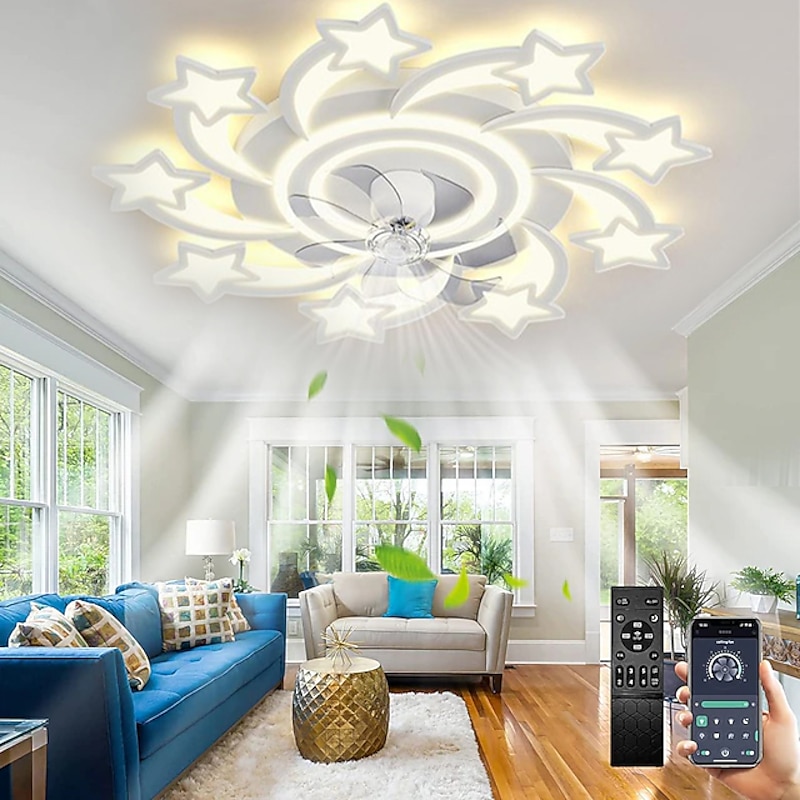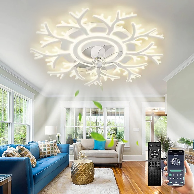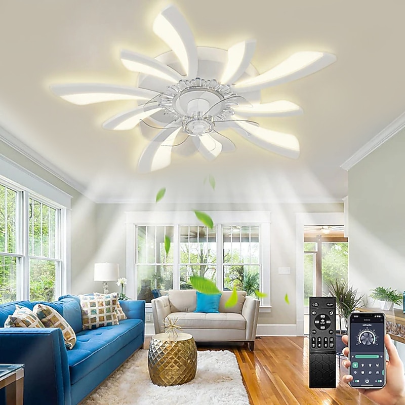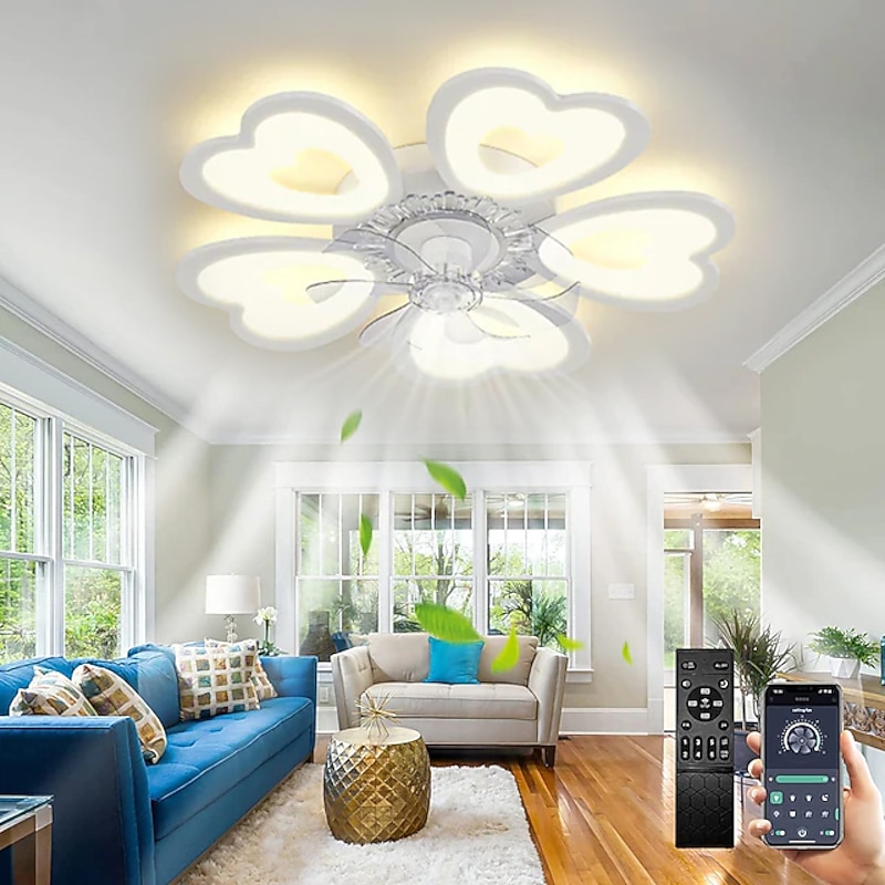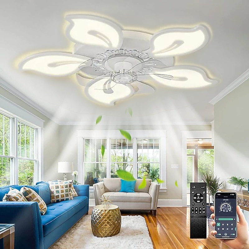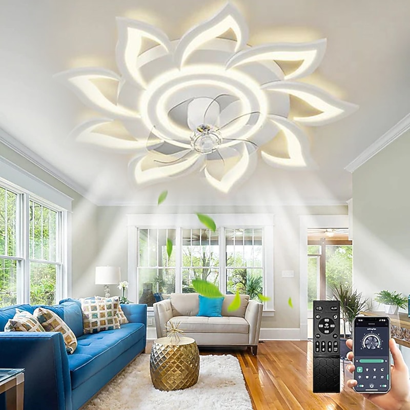 trending ! LED Ceiling Fans Dimmable with Remote Contral Flower Design 20"/39" 5/9-Heads Flush Mount Ceiling Lamp Acrylic Lampshade Chandelier Bedroom Living Room
