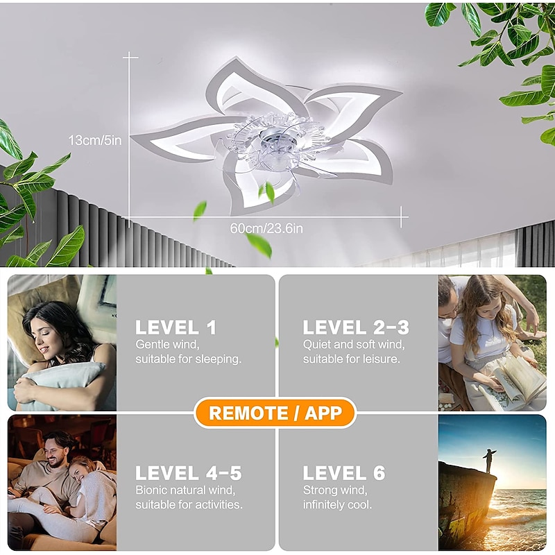 More information about LED Ceiling Fans Dimmable with Remote Contral Flower Design 20"/39" 5/9-Heads Flush Mount Ceiling Lamp Acrylic Lampshade Chandelier Bedroom Living Room