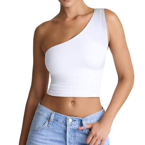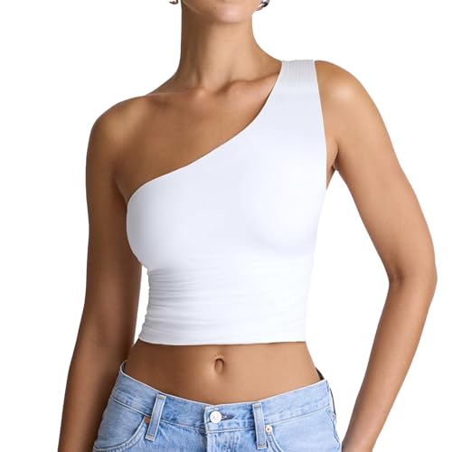 trending ! Women's Sexy One Shoulder Crop Tops Sleeveless Cropped Tank Tops Ruched Shirts
