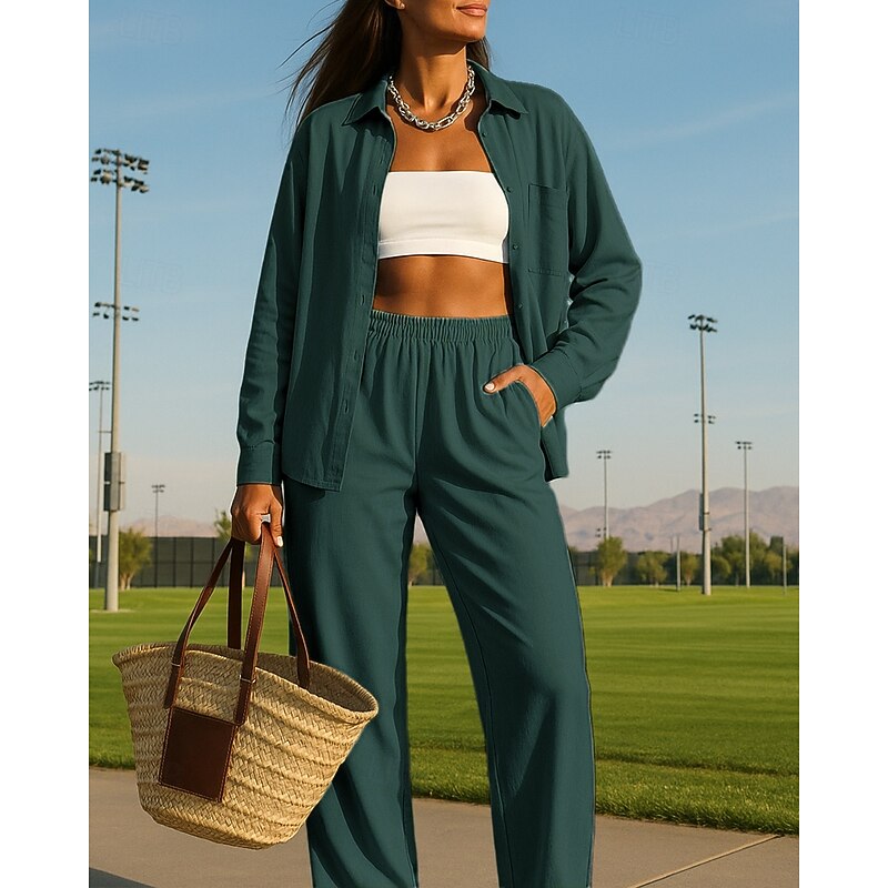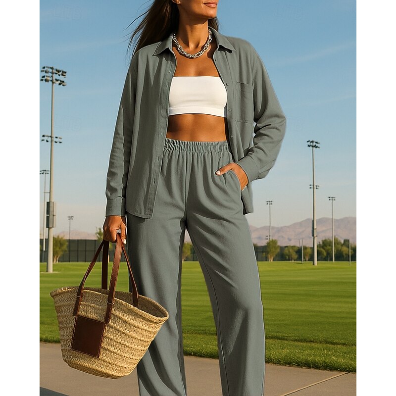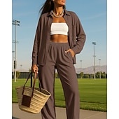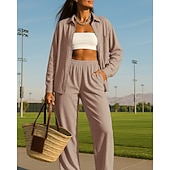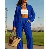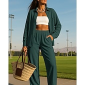 $30.99 - Women's Wide Leg Pants Casual Suit Shirt Jacket with Pocket Solid Colored Clothing Suit Fall White Light Green Outdoor Travel Sports High Waist Breathable Long Sleeve Sport Activewear Micro-elastic 2025. Shop for cheap Tracksuits online? Buy at lightinthebox.com on sale today!