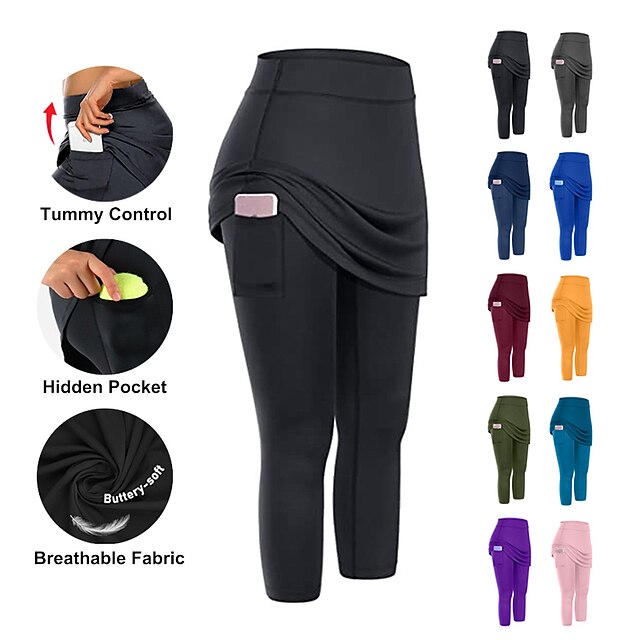trending ! Women's Running Capri Leggings Running Skirt with Tights 2 in 1 with Phone Pocket Base Layer Athletic Athleisure Fall Spandex Breathable hasty Dry Moisture Wicking supple Gym Workout Running Jogging