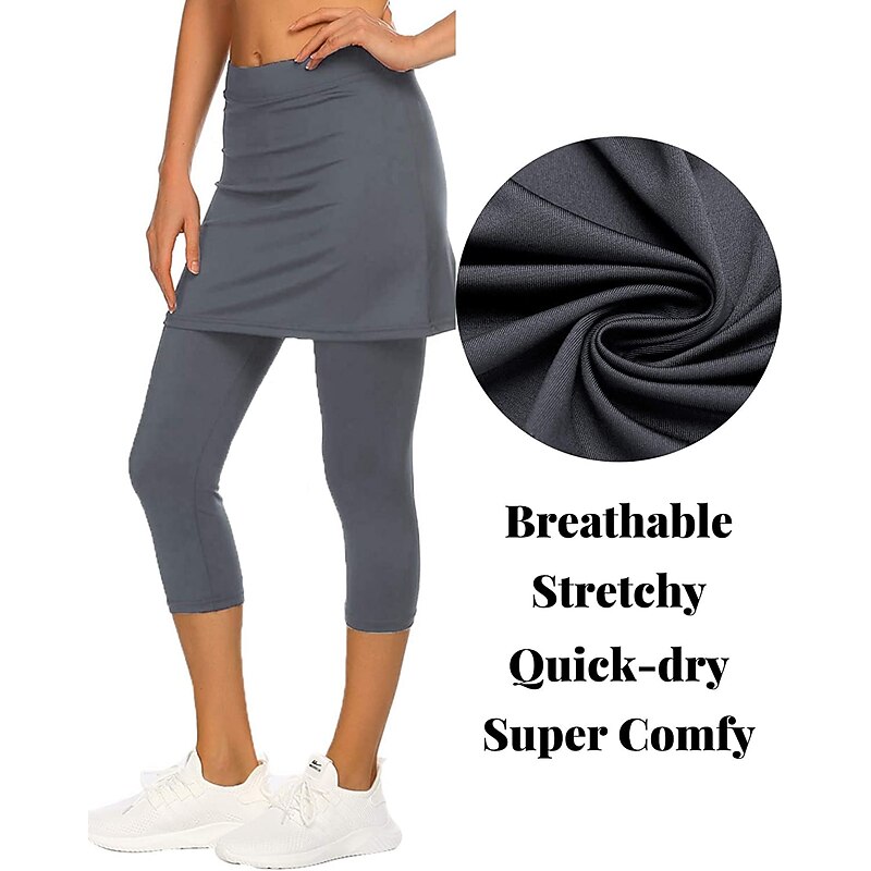 More information about Women's Running Capri Leggings Running Skirt with Tights 2 in 1 with Phone Pocket Base Layer Athletic Athleisure Fall Spandex Breathable prompt Dry Moisture Wicking velvety Gym Workout Running Jogging