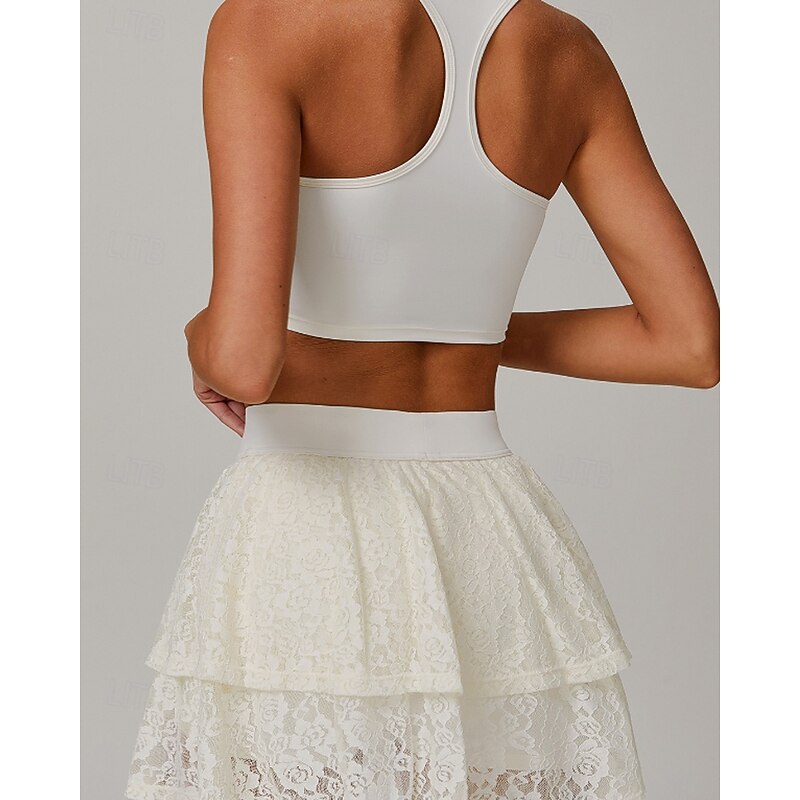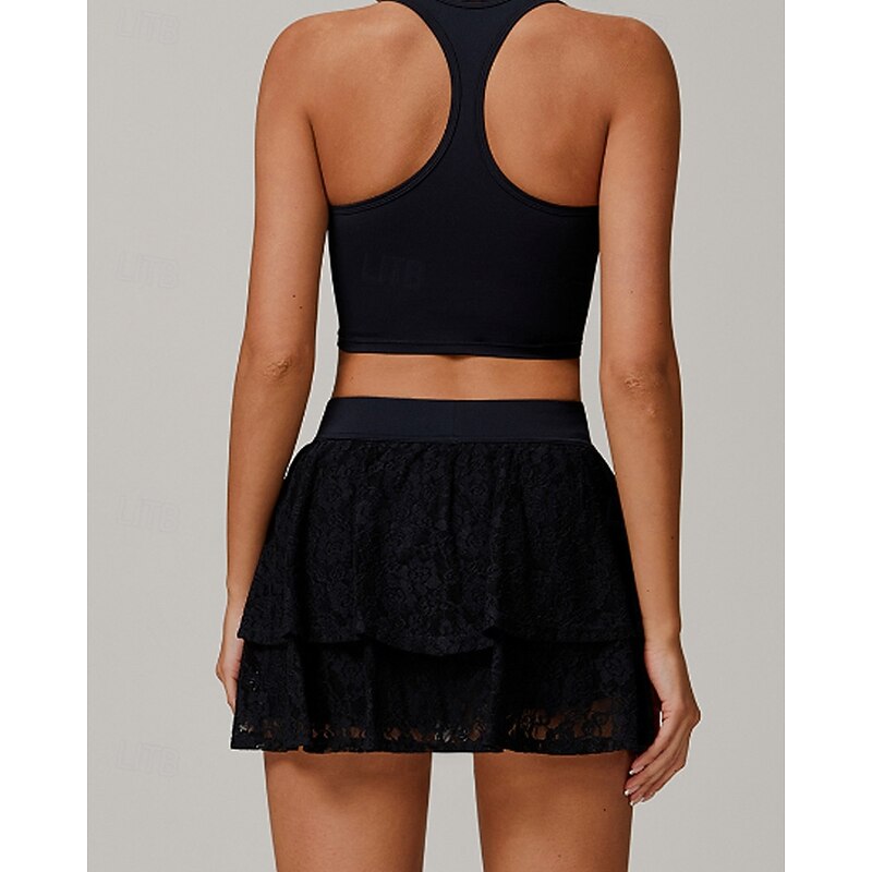 This Women's Solid Colored Sports Set Tennis Set Sleeveless Lace Contrast Mesh Breathable Tennis Pickleball Round Neck Sports Bra Skort Black Cream Blue Tennis Clothing combines elegant design with practical functionality. Every detail has been carefully considered to ensure you get the premier possible experience. The first-class construction means this product will serve you well for years to come.
