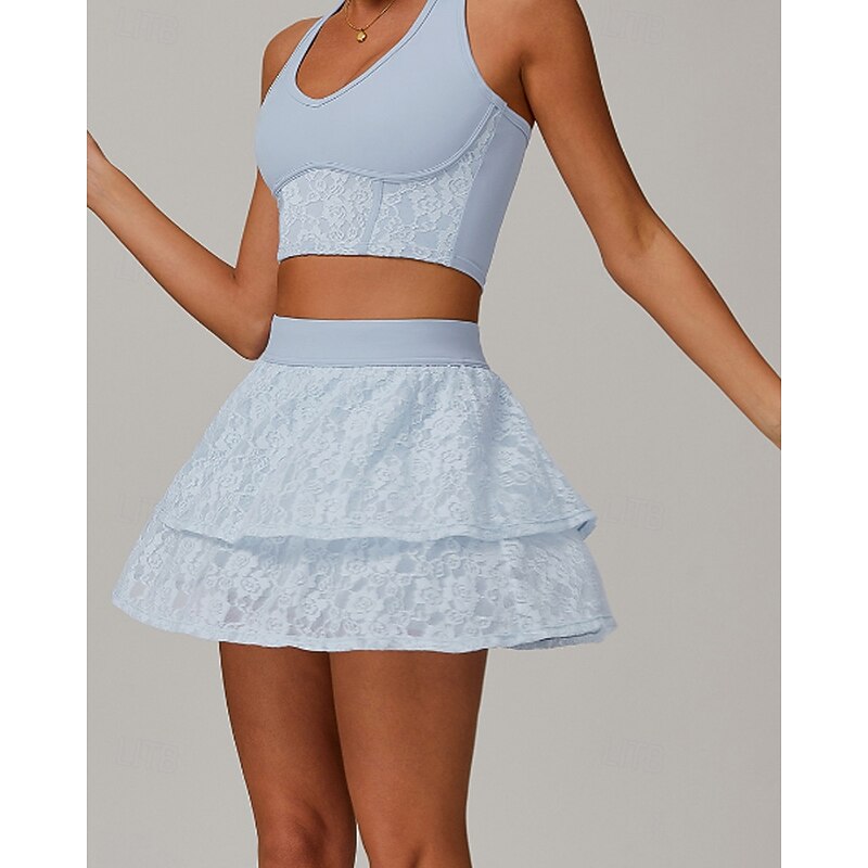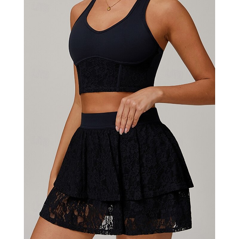 $55.99 - Women's Solid Colored Sports Set Tennis Set Sleeveless Lace Contrast Mesh Breathable Tennis Pickleball Round Neck Sports Bra Skort Black Cream Blue Tennis Clothing 2025. Shop for cheap Women's Tennis Set online? Buy at lightinthebox.com on sale today!