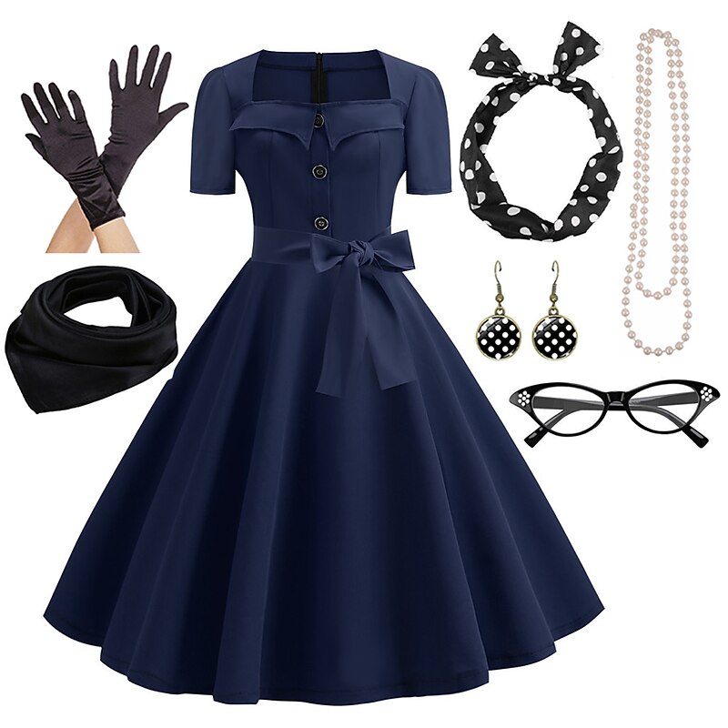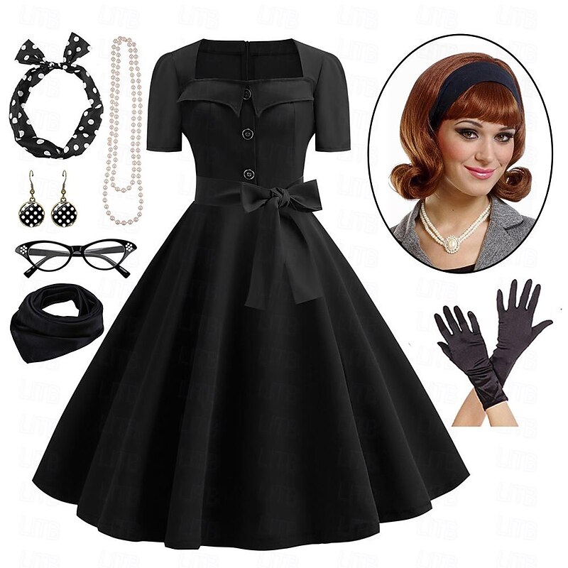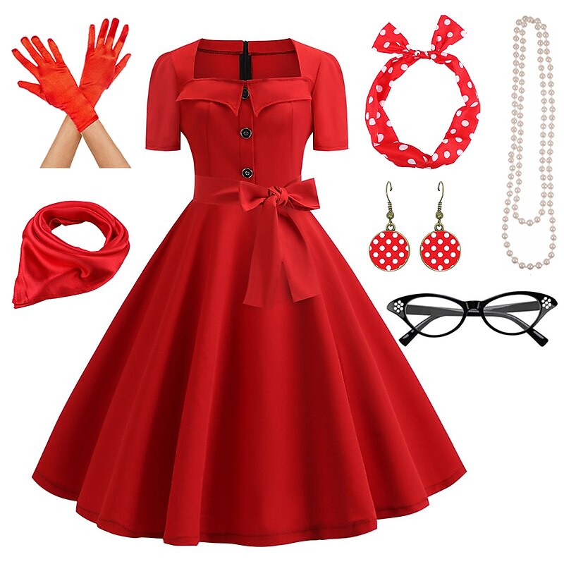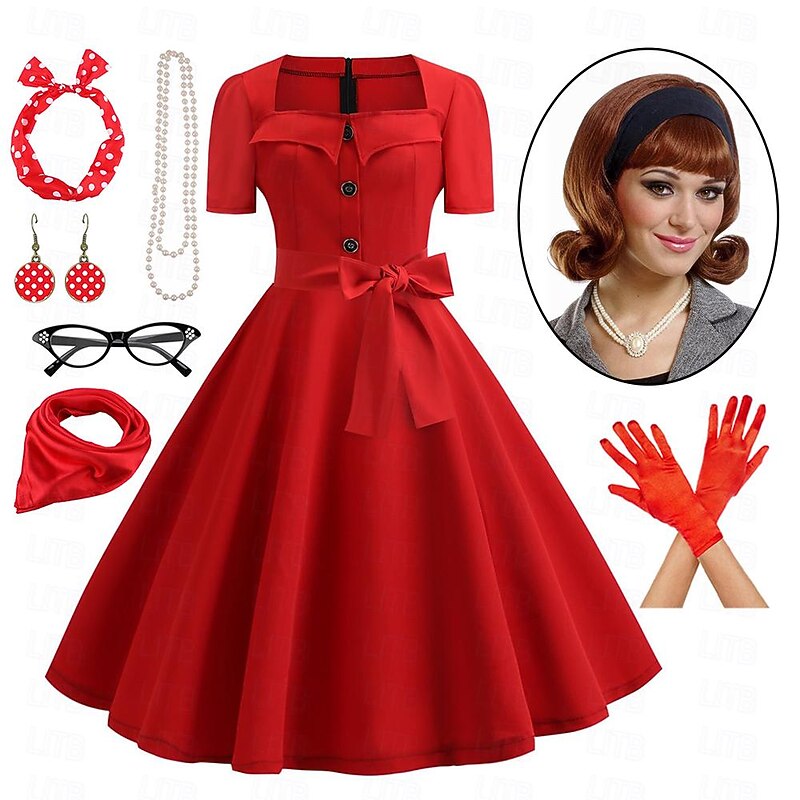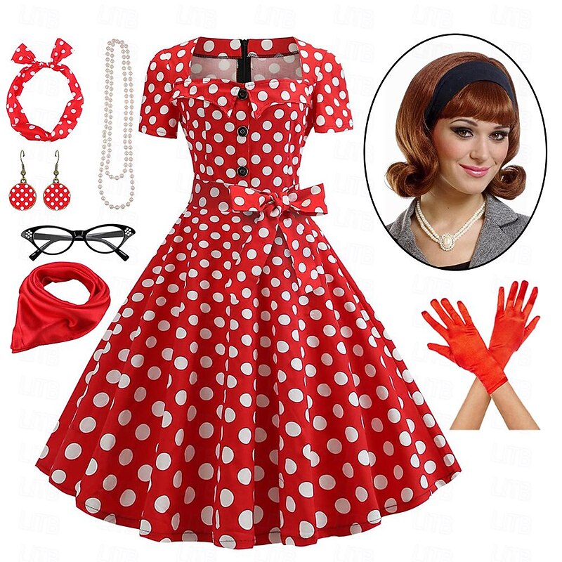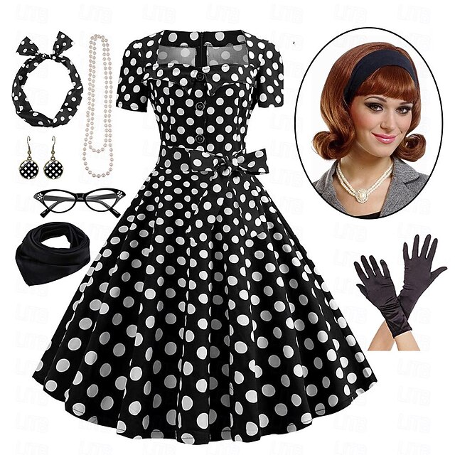 $54.99 - Women's A-Line Rockabilly Dress Polka Dots Swing Dress with Accessories Set 1950s Grease Outfits 60s Retro Vintage with Headband Chiffon Scarf Earrings Pearl Necklace Gloves 7PCS With Costume Wig 2025. Shop for cheap Outfits online? Buy at lightinthebox.com on sale today!