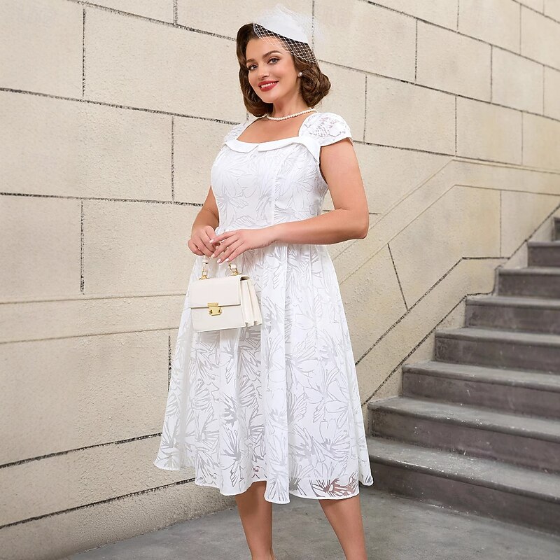 trending ! Retro Vintage 1950s Rockabilly Midi A Line Dress Flare Dress Plus Size Floral A-Line Fancy Dress Women's Vacation Homecoming Party & Evening Adults' Dress Spring & Summer