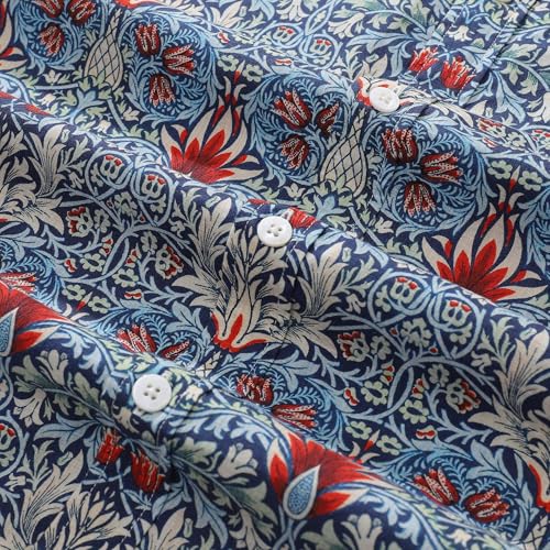 Men's Hawaiian Shirt 100 Cotton Snakehead Print Morris Designer Short-Sleeve Aloha Summer Beach Shirts with Pocket