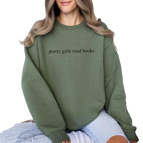 Why Choose Pretty Girls Read Books Sweatshirt, Minimalist Gift For Book Lover, Bookish Librarian Sweater, Book Club Gift, Unisex Crewneck Reading Sweatshirt Military Green?