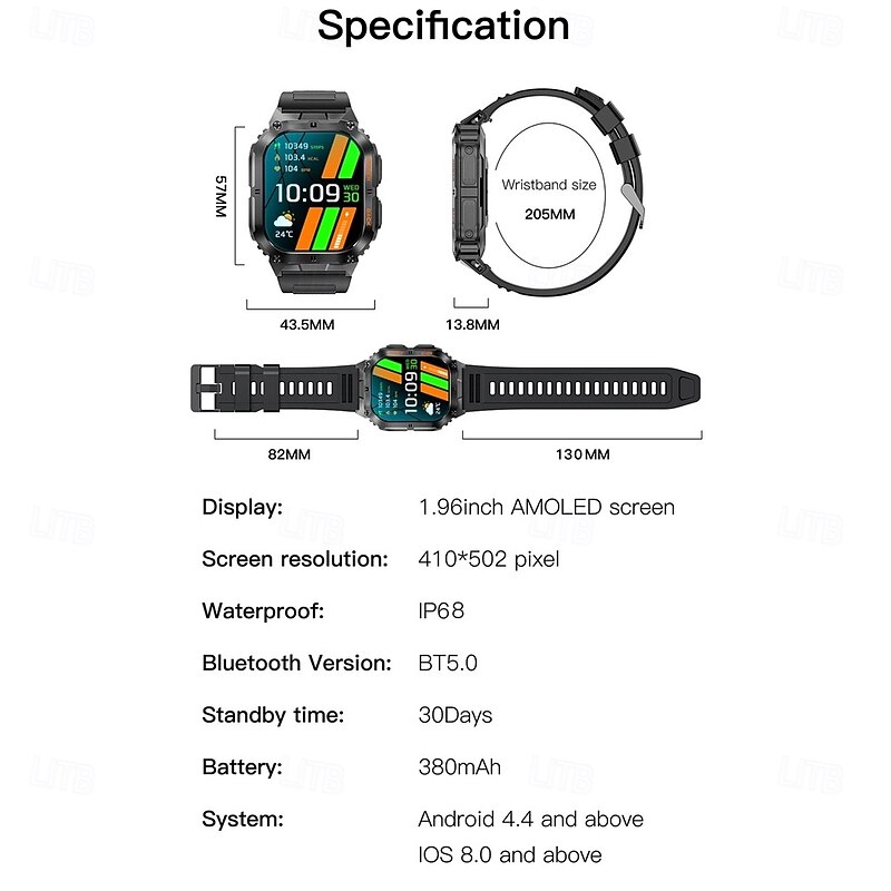 More information about K61 Pro Smart Watch Men Bluetooth Call 1.96inch AMOLED Screen Compass AI Voice Health Monitor Sport Fitness Tracker Smartwatch