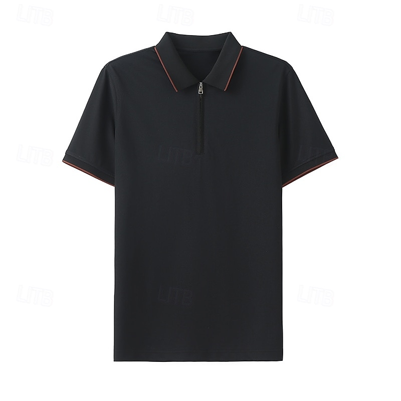 More information about Men's Polo Knit Polo Sweater Business Casual Lapel Short Sleeve Formal Color Block Zipper Summer Black Blue Gray Polo
