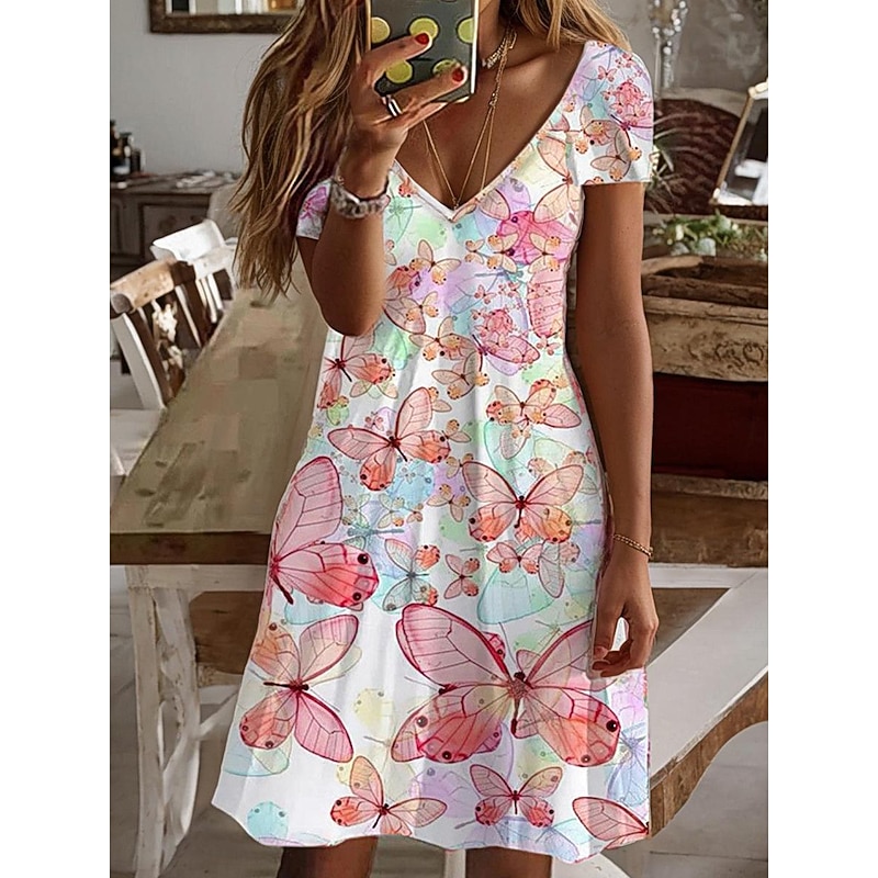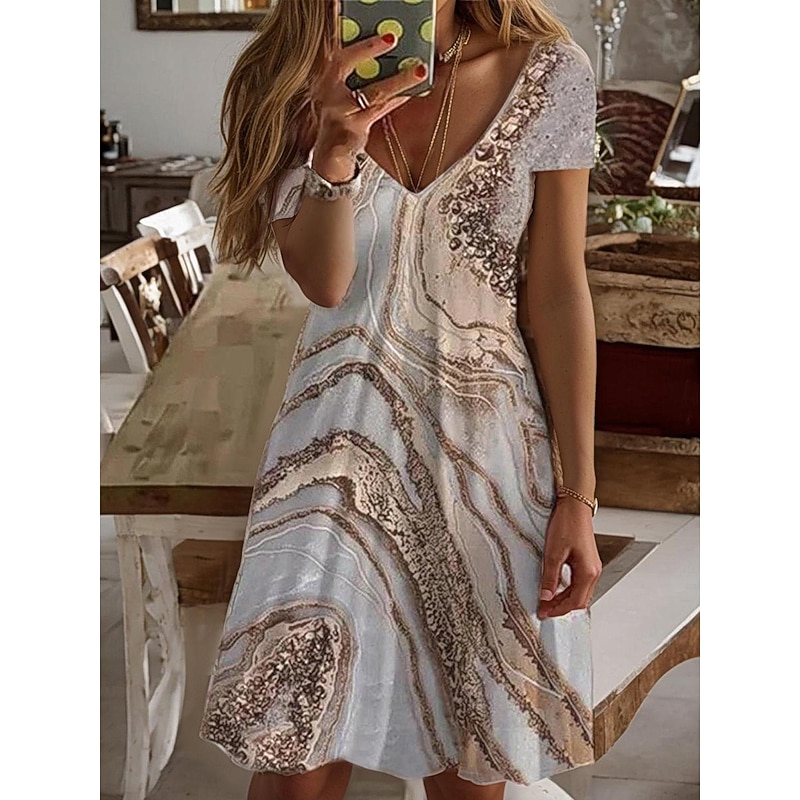 Women's Casual Dress Summer Dress new-age Vacation Daily Date Regular Fit Ombre Marble Short Sleeve V Neck Light Yellow Pink Royal Blue Sky Blue Summer