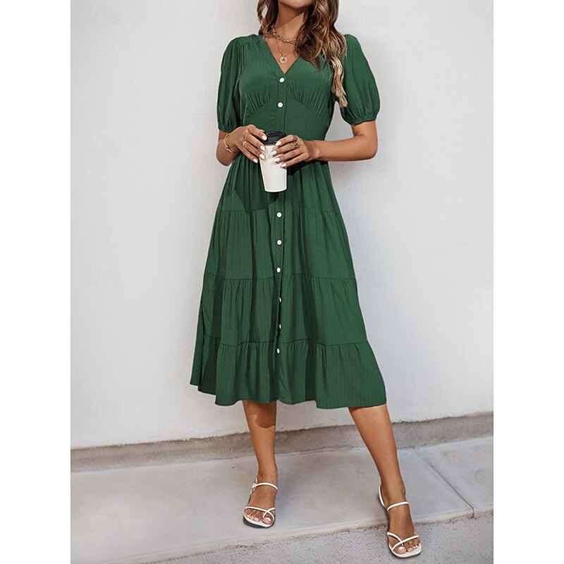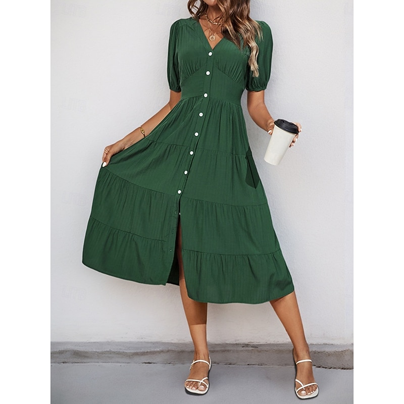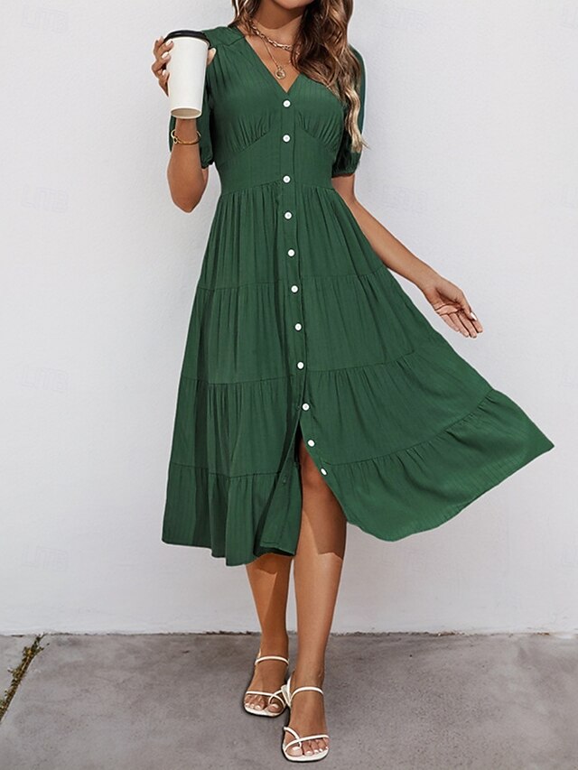 This Women's Midi Dress Casual Dress Swing Dress A Line Dress Basic Casual Vacation Daily Regular Fit Plain Short Sleeve V Neck Green Summer combines elegant design with practical functionality. Every detail has been carefully considered to ensure you get the premier possible experience. The first-class construction means this product will serve you well for years to come.