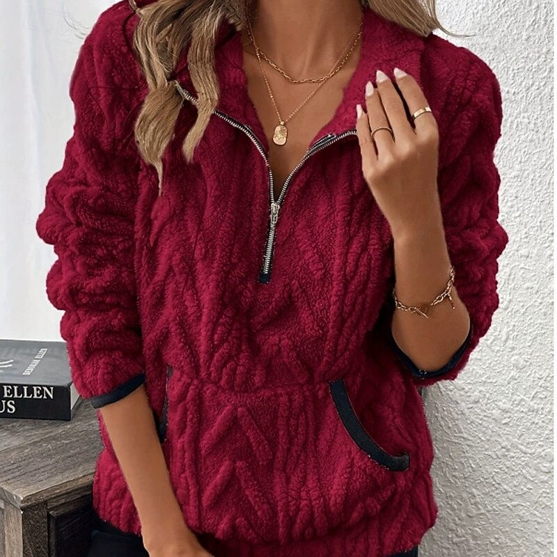 Why Choose Women's Pullover Sweatshirt Active Fashion Streetwear Long Sleeve Turtleneck Regular Tops Street Dailywear Casual Half Zipper Quarter Zipper Zip Up White Pink Wine Purple Coffee Fall Winter?