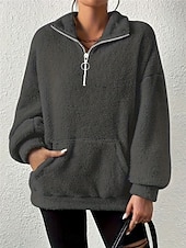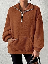 Women's Sweatshirt Casual Sherpa Fleece Plain Street Dailywear Turtleneck Pocket Half Zip Long Sleeve Brown Beige Gray Fall Winter