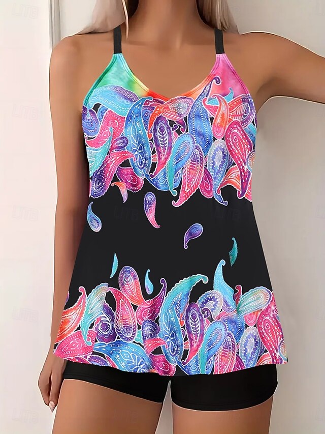 trending ! Women's Swimwear Tankini 2 Piece Boy Leg Swimsuit Backless High Waist Vacation Beach Wear Paisley V Neck Sleeveless Bathing Suits