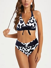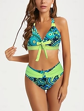 More information about Women's Swimwear 2 Piece Shorts Swimsuit Backless Geometrical Vacation Beach Wear Graphic Plunge Sleeveless Bathing Suits