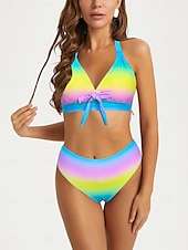 trending ! Women's Swimwear 2 Piece Shorts Swimsuit Backless Geometrical Vacation Beach Wear Graphic Plunge Sleeveless Bathing Suits