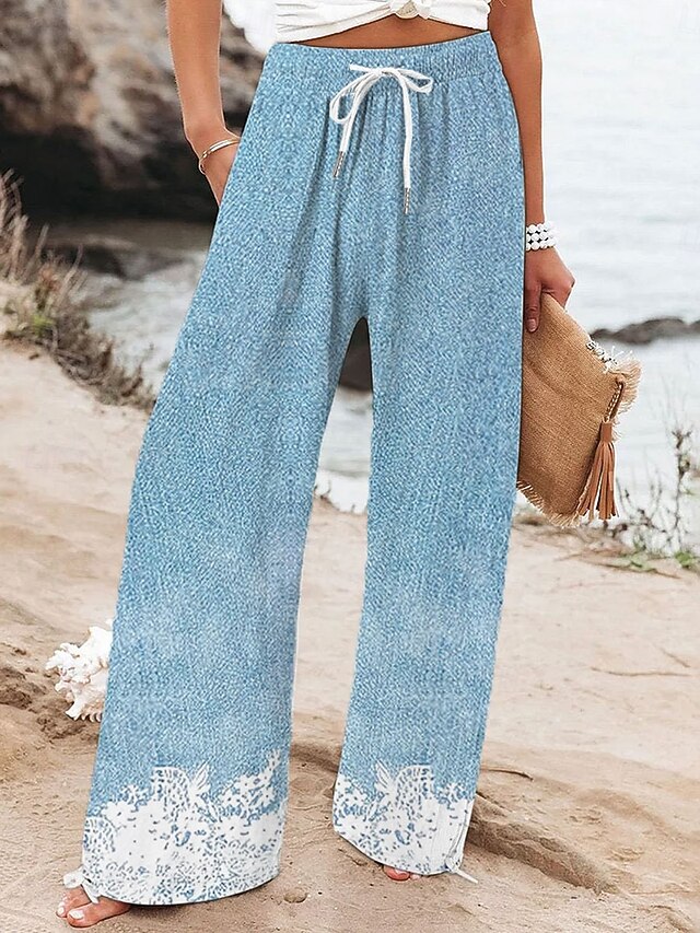 Why Choose Women's Wide Leg Chinos Baggy Pants Vacation Fashion Basic Full Length High Waist Floral Graphic Printing Thermal comfortable velvety Breathable Micro-elastic Formal Vacation Street Pink Blue Blue Green Summer?