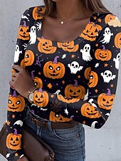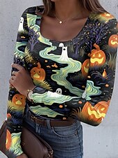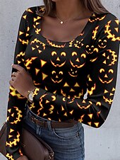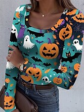 This Halloween Women's T shirt Pumpkin Ribbed Graphic Square Neck Long Sleeve Casual Vintage Regular Tops Daily Print Black Blue Orange Green Spring Fall combines elegant design with practical functionality. Every detail has been carefully considered to ensure you get the finest possible experience. The first-class construction means this product will serve you well for years to come.