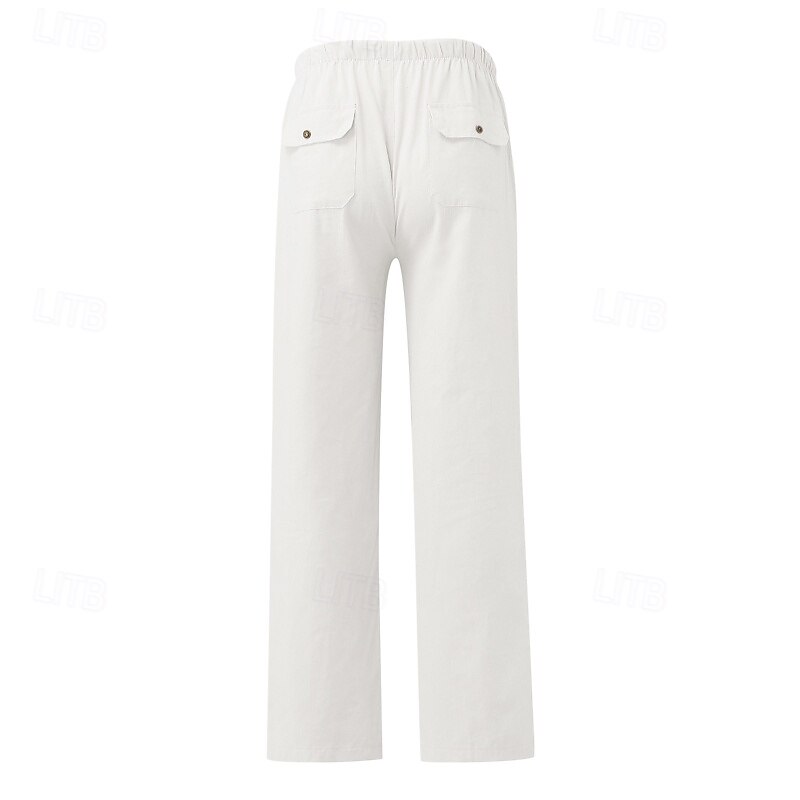 More information about Women's Cotton Linen Pants Slacks elementary Casual Full Length Natural Plain Pocket Elastic Drawstring Design Comfy Outdoor Street Daily Wear Dark Brown Depression Green Light Sky Blue Black Summer
