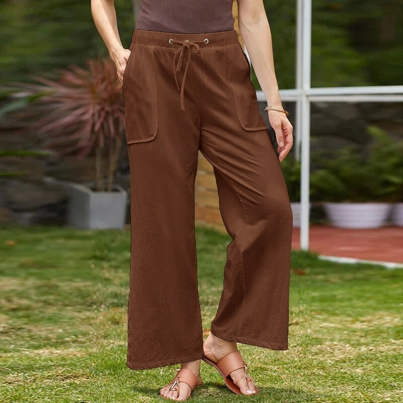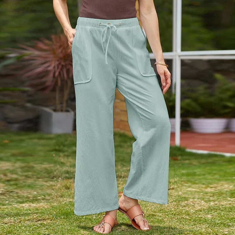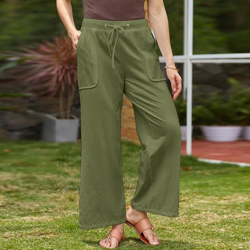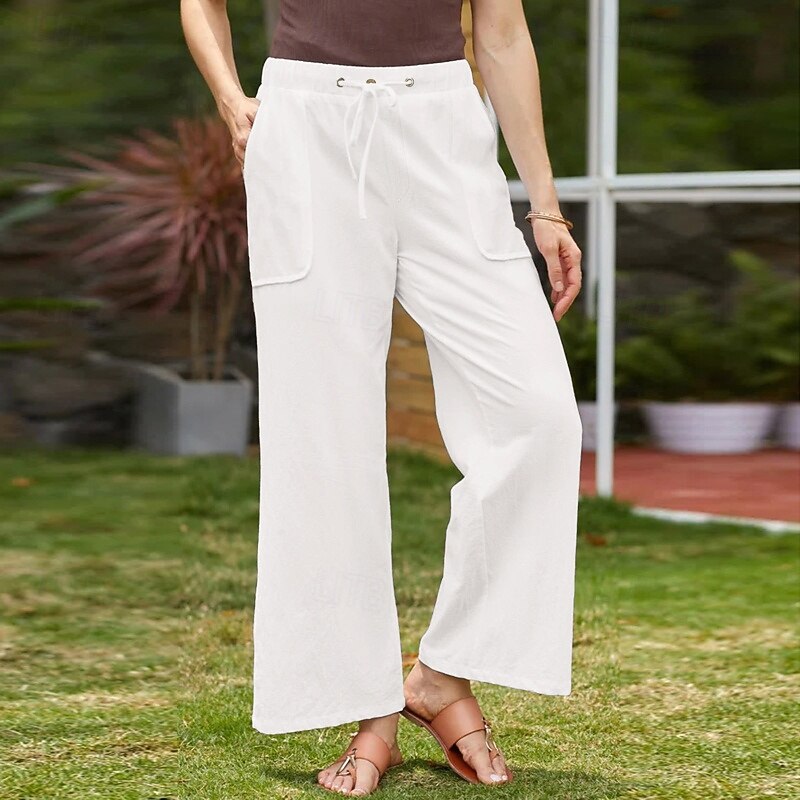 trending ! Women's Cotton Linen Pants Slacks basic Casual Full Length Natural Plain Pocket Elastic Drawstring Design Comfy Outdoor Street Daily Wear Dark Brown Depression Green Light Sky Blue Black Summer
