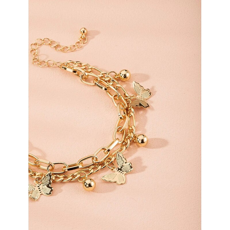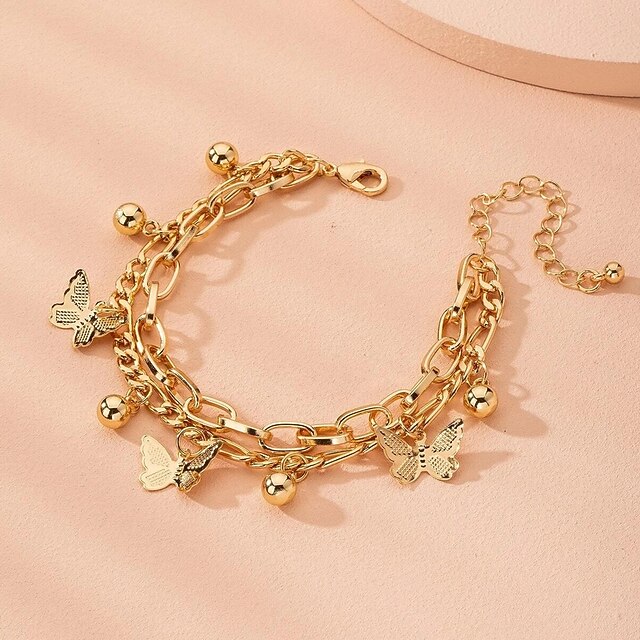 Women's Chain Bracelet Vintage Bracelet Layered Butterfly Fashion Personalized Elegant Holiday Alloy Bracelet Jewelry Gold For Holiday Date Birthday Beach Festival