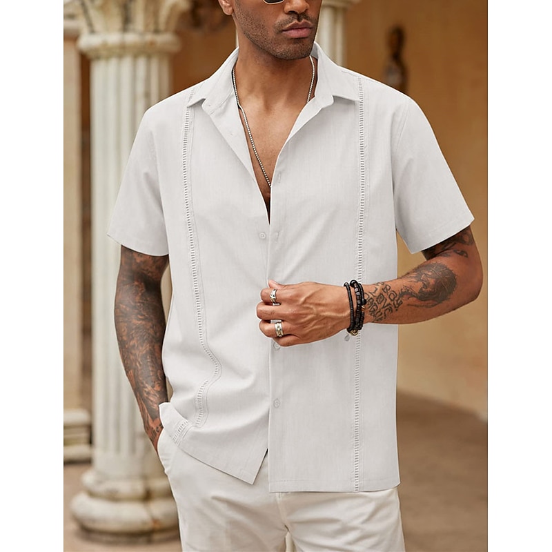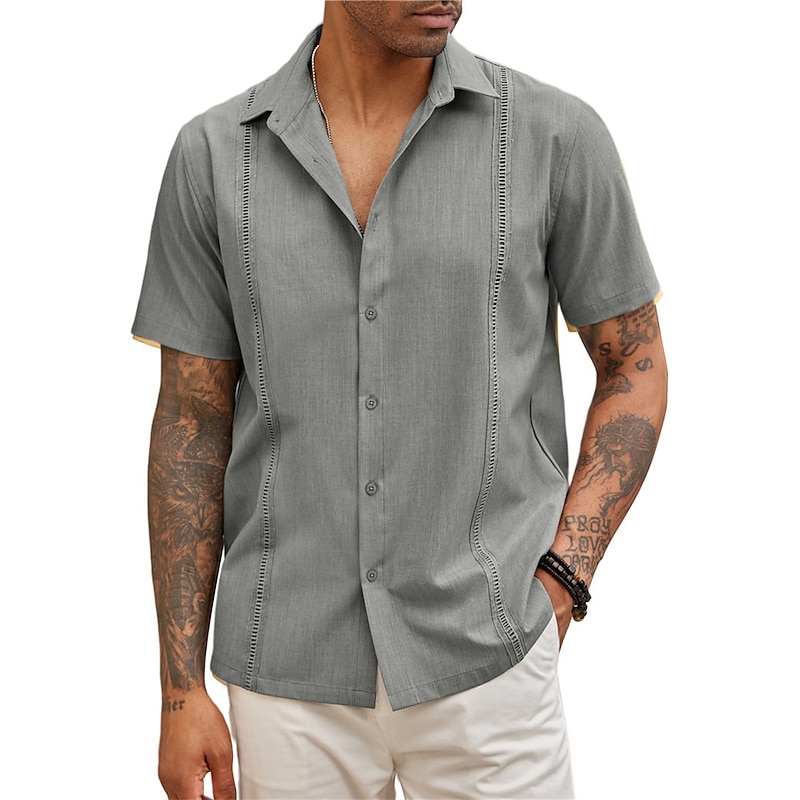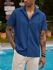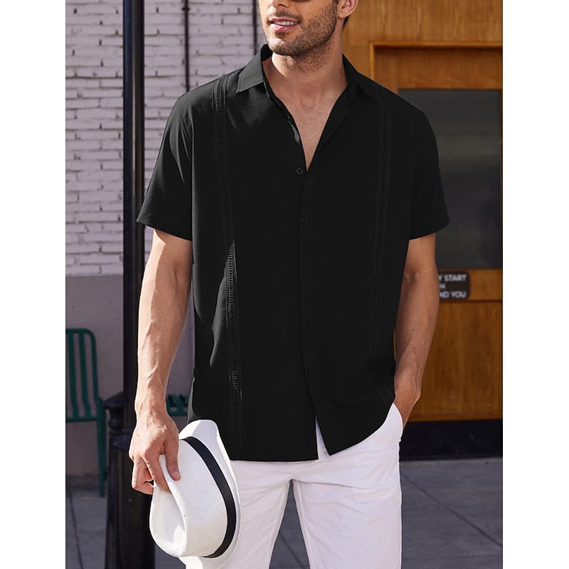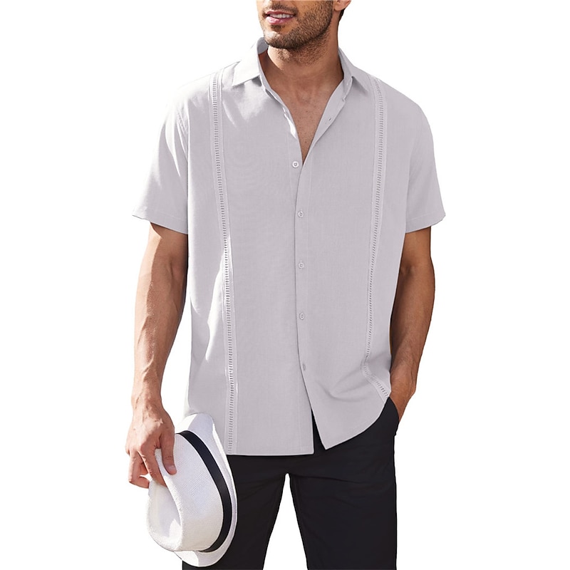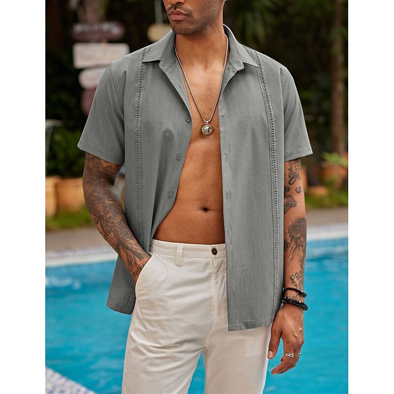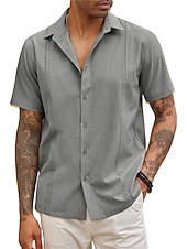 More information about Men's Shirt Summer Shirt Casual Shirt Beach Shirt Button Up Shirt Black White Dark Blue Gray Short Sleeve Plain Lapel Vacation Daily Clothing Apparel Cotton Cotton Blend Fashion Casual smooth