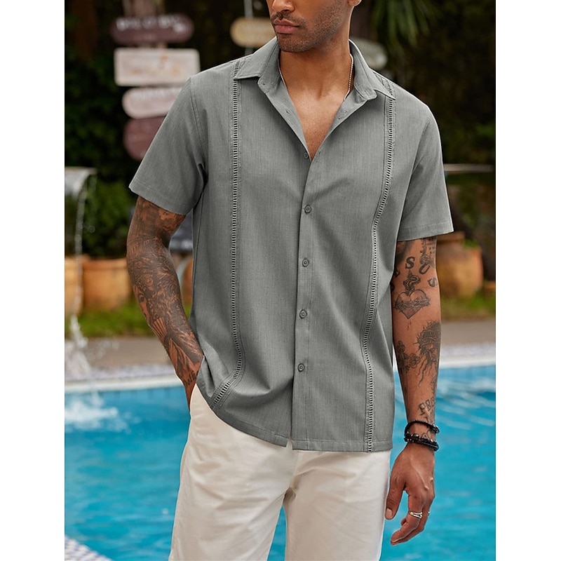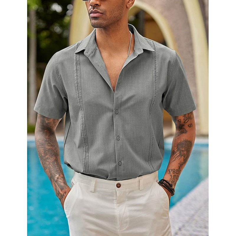 trending ! Men's Shirt Summer Shirt Casual Shirt Beach Shirt Button Up Shirt Black White Dark Blue Gray Short Sleeve Plain Lapel Vacation Daily Clothing Apparel Cotton Cotton Blend Fashion Casual cushy
