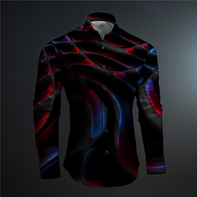 More information about Men's Optical Illusion Geometric Pattern Button Up Shirt Printed Shirts Long Sleeve Subcultural Vacation Party Street Spring & Summer Turndown Print Button-Down Red Blue Gray