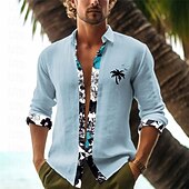 Highlights [Fabric:] Crafted from a lightweight and breathable polyester and slub fabric blend, this shirt ensures comfort in warm weather while providing a micro-elastic fit. [Fit:] The shirt features a regular fit, offering a comfortable yet sleek silhouette that suits a range of body types. [Design Highlights:] This men's shirt showcases a striking tropical theme with a distinctive palm tree print on one side. The design is elevated with a vibrant floral pattern lining the collar, placket, and cuffs. The long sleeves enhance the shirt's versatility, suitable for both day and night occasions. The turndown neckline and button-down style add a traditional yet casual touch. [Occasions:] Ideal for a variety of settings such as beach outings, casual gatherings, daily wear, weekend trips, or a relaxed night out, this shirt seamlessly blends laid-back style with sophistication. [Size Range:] Available in a wide selection of sizes including S, M, L, XL, 2XL, and 3XL to accommodate different preferences and ensure the perfect fit for every individual. Perfect for everyday use. premium materials and excellent craftsmanship ensure long-lasting durability.