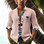 Men's Palm Tree Tropical Plants Summer Hawaiian Shirt Aloha Shirt Printed Shirts Long Sleeve Shirt Turndown Casual Daily Wear Going out Weekend Black White Pink S M L
