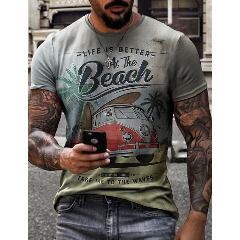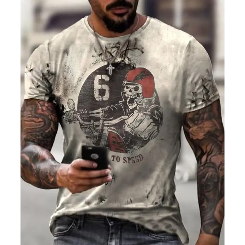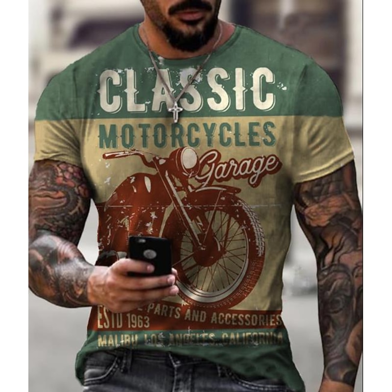 More information about Men's Graphic Motorcycle T Shirt Motorcycle T Shirt Short Sleeve T shirt 3D Print Crew Neck Shirt Vintage Fashion Designer Outdoor Daily Sports Light Yellow Light Brown Lace Dark Brown Spring & Summer