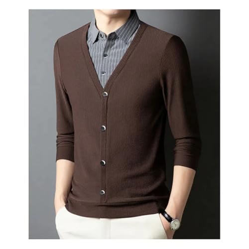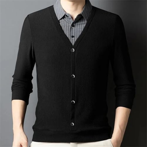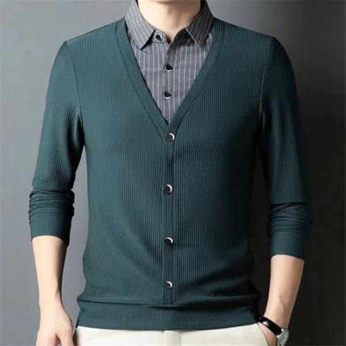 Men's Striped Button Sweaters Formal Fake Two Pieces Pullover Tops Long Sleeve Casual Jumper