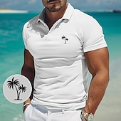trending ! Men's Palm Tree Polo Short Sleeve Polo Shirts Collared Shirts Casual Resort Outdoor Daily Wear Vacation Wear 3D Print Summer White Pink Blue