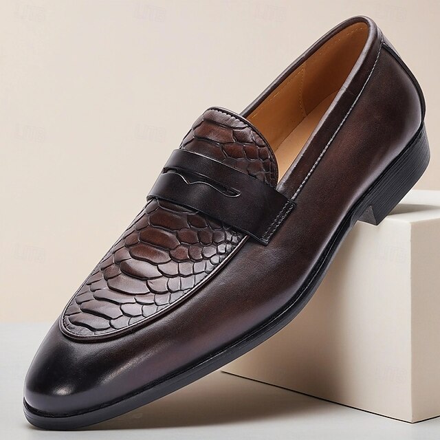 Why Choose Men's Black Leather Loafers – Handmade Slip-On Dress Shoes with Crocodile Embossed Design for Business, Party and Wedding?