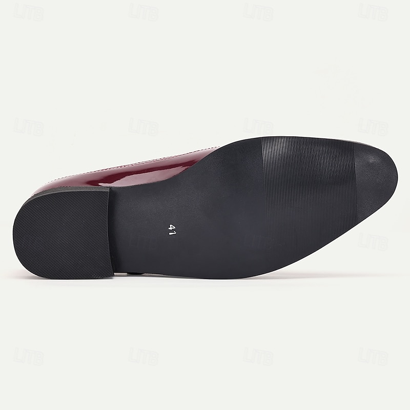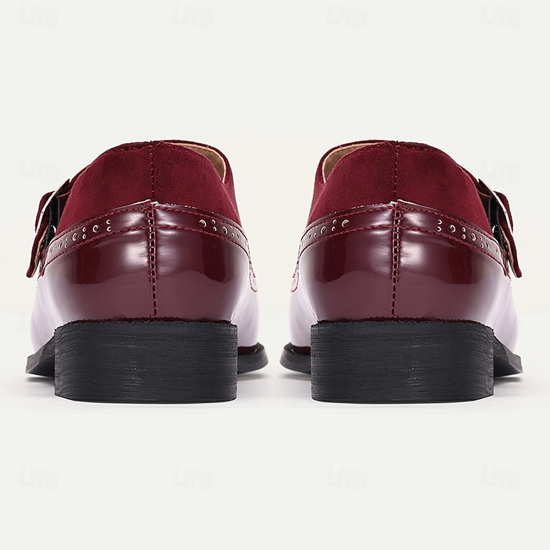 More information about Men's Burgundy Patent Leather Monk Shoes with Buckle – Elegant Prom Shoes for Formal Events