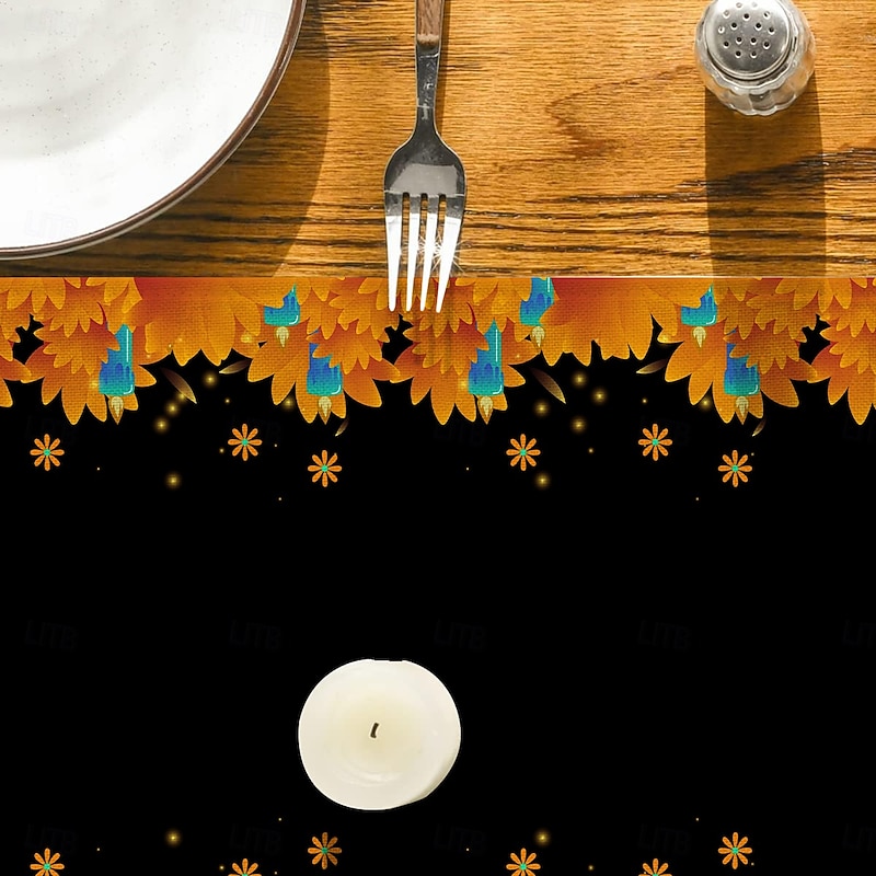 Why Choose 1pc/6pcs/7pcs Halloween Maple Leaf Skull Candle Linen Tablecloth Table Mat Halloween Gift Design Tablecloth Suitable for Home Dining Room and Restaurant Table Decoration Home Decoration Tablecloth Ind?