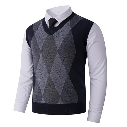 trending ! Cambkatl Men's Preppy heated Fleece Lined Sweater Vest Teens vintage V Neck Color Block Knitted Sleeveless Pullover Sweaters